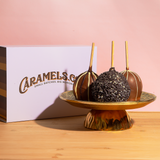 Enjoy three jumbo-sized Gourmet Belgian Chocolate-Covered Caramel Apples! Our three holiday flavors each start with a crisp Granny Smith apple that is hand-dipped in our creamy, small-batch caramel. Handmade to order, these Belgian Chocolate Caramel Apples are then covered with rich and decadent melted chocolates. An elegant gift, each Caramel Apple are topped with a red bow and placed inside a beautiful gift box.