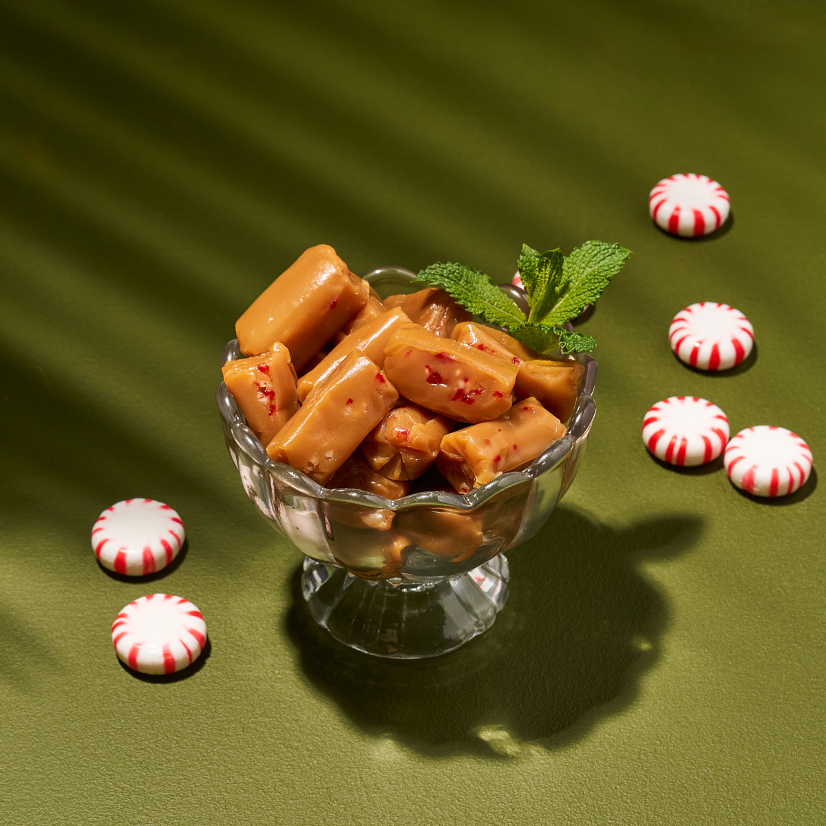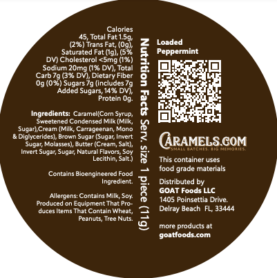 A minty fresh and festive favorite. Loaded Peppermint starts with our signature, extra-soft caramel and ends with peppermint pieces at the center. Each bite is smooth but invigorating—these are perfect for the holiday season and beyond.