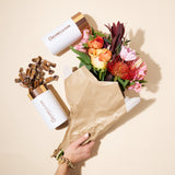 This bouquet boasts peach-toned roses, ranunculus, and carnations, paired with elegant Asiatic lilies and delicate mini callas. An elegant, charming way to celebrate sweet moments.